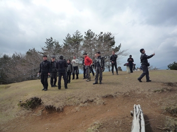 | 昼食の後は、浜石岳に向いました。バイクで細い山道を登って、最後の頂上までは徒歩で登ります。由比海岸、三保の松原は勿論のこと、雲が晴れれば伊豆半島、富士山、南アルプスまで、360度のパノラマ絶景が楽しめます。ここは間違いなく隠れたパワースポット、心が洗われて元気になりました。 |